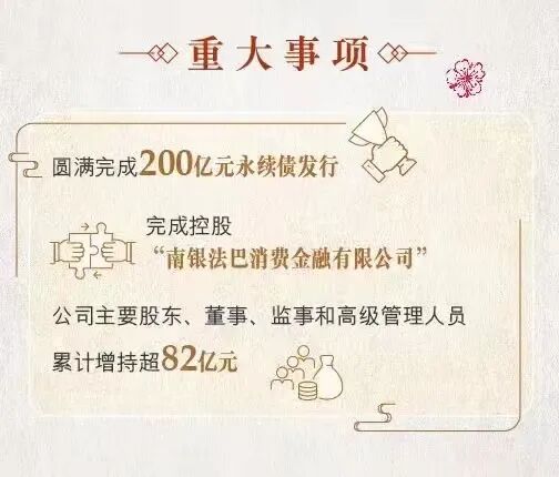 今年,南京银行还加强了资本补充,进一步提升了服务实体经济和抵御风险的资本实力。