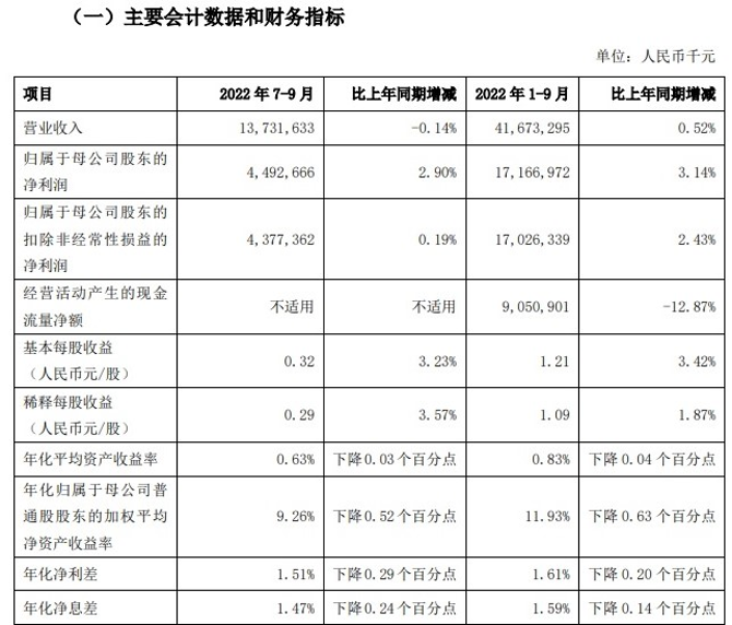 上述数据显示,导致前三季营收增速较上半年放缓的主要原因是前三季利息净收入和投资收益增速较上半年下降。