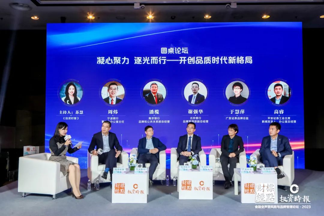在此次论坛的圆桌讨论环节,五位来自银行、券商领域的重量级嘉宾,共同就“在新环境、新挑战、新形势下,如何凝心聚力、逐光而行,开创品质时代新格局”进行探讨。北京银行品牌管理部副总经理谢强华表示,北京银行以“产品+品牌”“服务+品牌”“活动+品牌”的形式,将品牌价值传播嵌入全行生态体系,不断彰显品牌活力、扩大品牌效应、提升品牌价值,打造了立体化、体系化的品牌传播新格局,进一步扩大品牌建设与业务拓展倍增效应,助力高质量发展。数据显示,北京银行品牌价值已达769亿元,一级资本排名全球千家大银行第50位,连续九年跻身全球百强银行。
