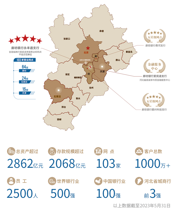 此次论坛的承办方之一,是作为地方一级法人银行的廊坊银行。近年来,廊坊银行秉持“服务国家战略、服务区域经济、服务人民群众”的历史使命,自觉服从发展大局,通过发挥自身综合经营和特色业务优势,加快构建以廊坊为主体、以石家庄和天津为两翼、以北京城市副中心和雄安新区为新引擎的“一体两翼双引擎”发展新格局,努力为区域发展提供不竭的金融动力。截至2023年5月31日,廊坊银行资产2862.48亿元,各项贷款1743.38亿元,各项存款2068.44亿元,员工近2500人,下辖天津、石家庄两家分行,103家营业网点遍布京津冀腹地,服务客户总数超过1000万户,综合实力稳居河北省11家城商行前3强、中国银行业100强、世界银行业500强。