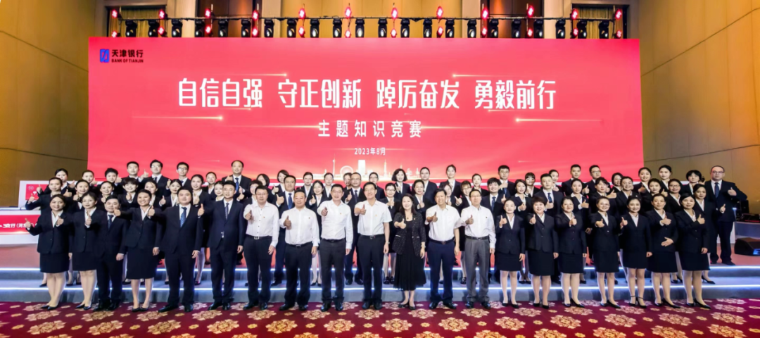 近日,天津银行股份有限公司(以下简称:天津银行)举办“自信自强 守正创新 踔厉奋发 勇毅前行”主题知识竞赛。市委主题教育第二十二巡回指导组组长李国强,天津银行党委书记、董事长于建忠,领导班子成员出席。来自总行综合、运营、风险、批发、零售、科技等6大工作条线,13家分支机构和9家子公司的22支代表队,共66名选手参赛。天津银行各部门、分支机构、子公司主要负责同志及近300名职工现场观赛。