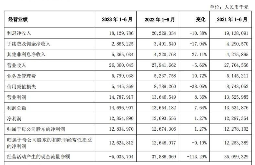 上海银行今年上半年营业收入下降主要是利息净收入、手续费及佣金净收入同比下降。