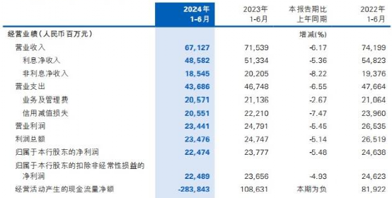 据民生银行半年报,今年上半年,该行营业收入同比降6.17%,归母净利润同比降5.48%,双双较去年同期加速下滑。