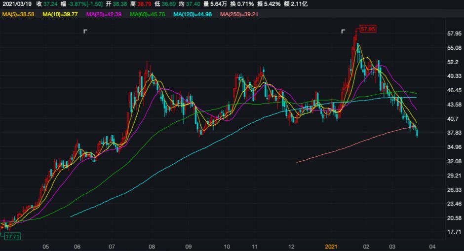 日前,广东新宝电器股份有限公司(下称新宝股份,002705.SZ)披露的2020年度业绩快报显示,该公司营收及归母净利润均呈现出同比增长的态势。但这一情况并未迎来二级市场认可,3月19日该公司股价收于37.24元/股,自3月5日起股价已下挫15.27%,距1月22日57.59元/股阶段性高点也已下跌35%。