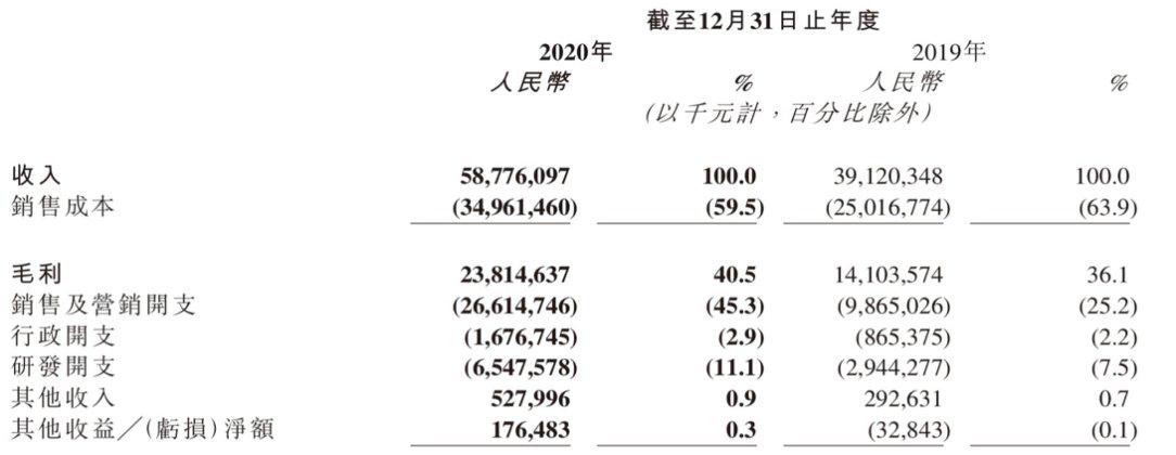 同时,其全年销售和营销费用高达266亿元,同比增长169.8%,占总营收的比重达45.3%,较2019年上升超过20个百分点。