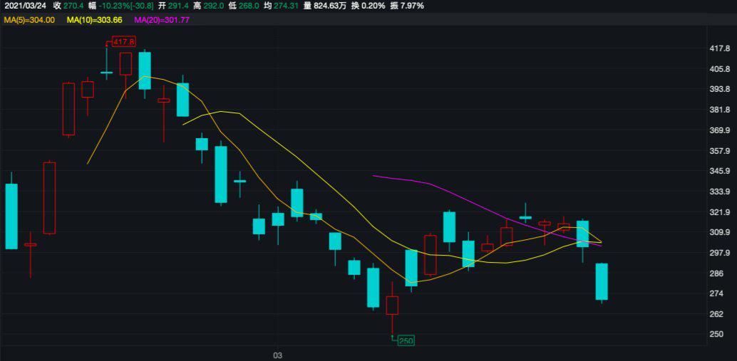 不过,近日科技股出现大幅波动,快手也随之明显回调。截至2021年3月23日收盘,快手报收于301.2港元/股,与前期高点相比,股价已跌去28%,但与发行价相比,该股仍有较大涨幅。