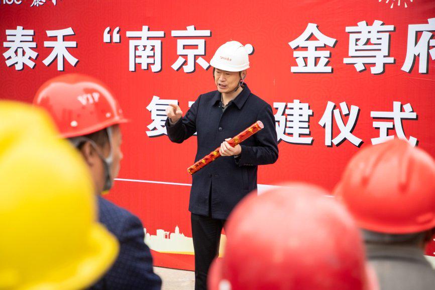在简单的复工续建仪式上,泰禾南京高管、建筑施工方负责人着重强调了安全意识和品质底线。