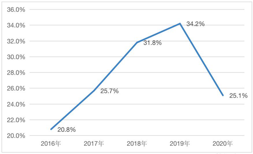 然而,一连串漂亮的数据,亦难掩越秀地产盈利能力的下滑。2020年,该公司毛利率出现2017年以来的首次下降,同比大降9.1個百分点至25.1%,为2017年来最低水平。毛利、经营盈利、除税前盈利及税后盈利均有不同程度的下滑,降幅分别为11.4%、16.7%、10.6%和1%。