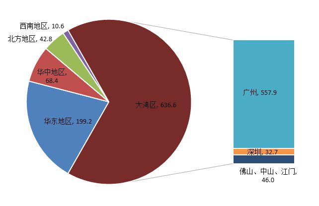 越秀地产2020年合同销售金额分地区统计(单位:亿元)