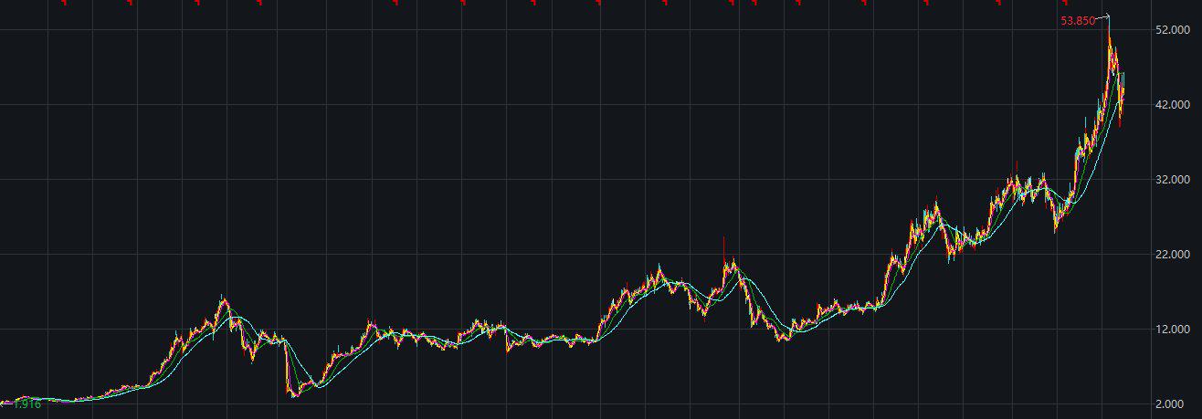 2017年,蒙牛曾提出未来三年销售额和市值同时突破千亿元的目标。截至2021年3月30日收盘,蒙牛乳业报收于44.85港元/股,市值达1770.76亿元,突破千亿。但其营收距千亿还差240亿元,仍有不小的距离。