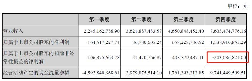 2020年第四季度金融街扣非净利润亏损