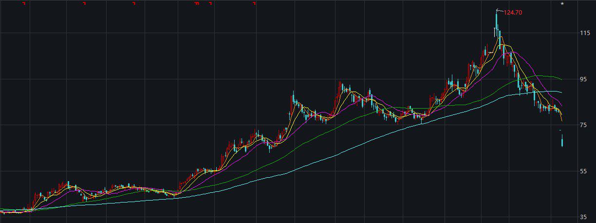 自2021年2月18日顺丰控股盘中触达124.70元/股历史最高点后,该股便一路下跌,不足两月股价已下挫43.72%,市值缩水超2300亿元