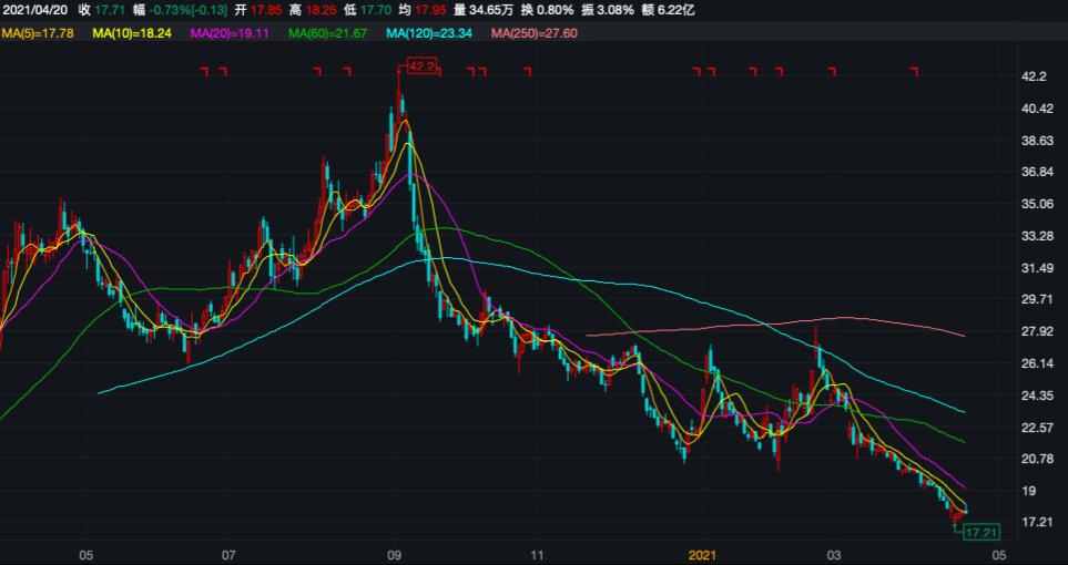 2021年4月15日,新希望六和股份有限公司(下称新希望,000876.SZ)股价一度下探至17.21元/股,创近一年以来新低。触发其股价低点的主要原因,即为净利润同比大降九成的一季度业绩预告。