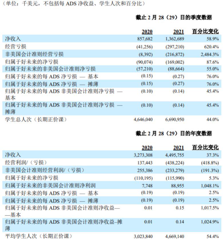 近日,知名K12教育培训企业好未来发布了2021财年第四财季及全年未经审计财务报告。