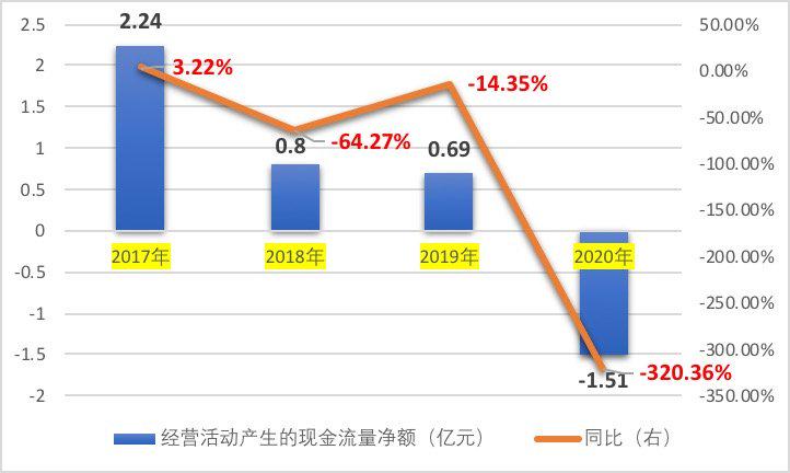 全聚德2017年—2020年经营活动产生的现金流量净额及增速情况