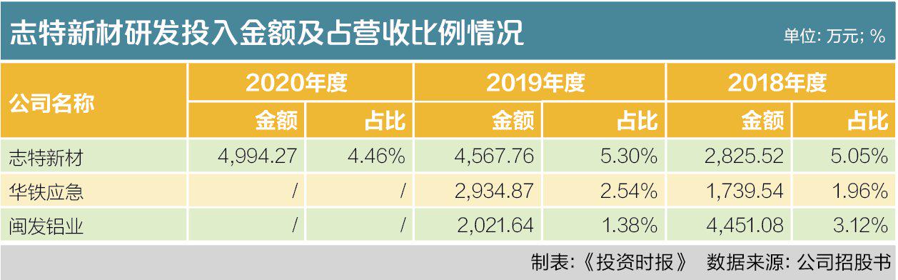 《投资时报》研究员查阅该公司招股书注意到,报告期内,其研发费用分别投入2825.52万元、4567.76万元、4994.27万元,呈持续增长态势。研发投入占营业收入比例也均在5%上下,高于同业公司2%左右的研发投入均值。