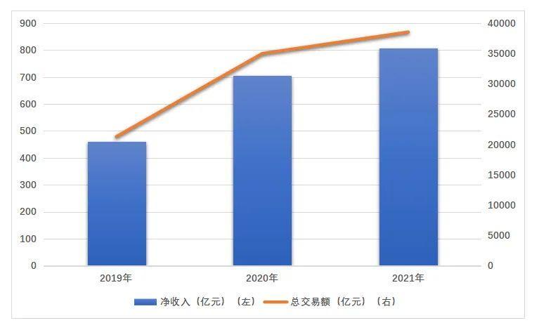 贝壳近三年净收入及总交易额变化情况