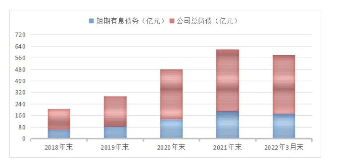 但梳理相关数据《投资时报》研究员发现,断料风波所暴露出的资金紧张恐非“一日之寒”。业绩预告显示,今年上半年,该公司预计归母净亏38亿元—46亿元,若加上2021年归母净亏188.19亿元,一年半已累亏226.19亿元—234.19亿元。净亏下,公司现金流堪忧。截至2022年3月末,该公司债务规模增加、短期带息债务占比超四成,资产负债率还高达97.03%,接近资不抵债边缘。