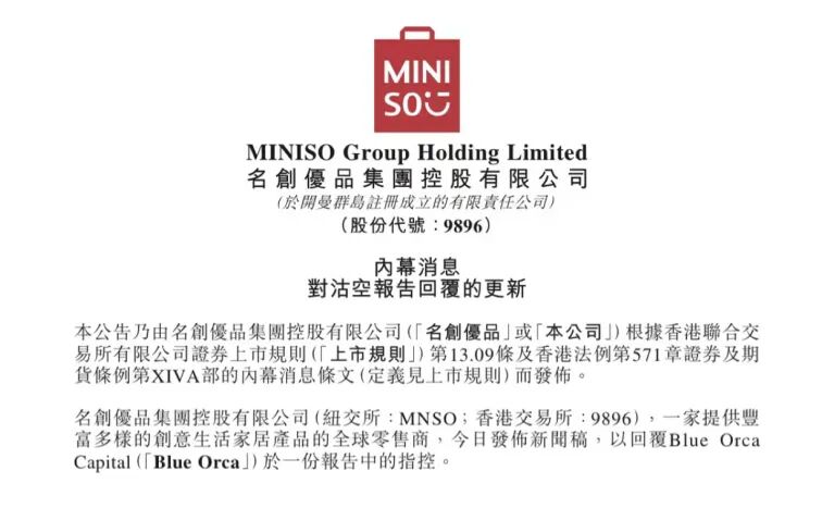 名创优品对沽空报告的回复