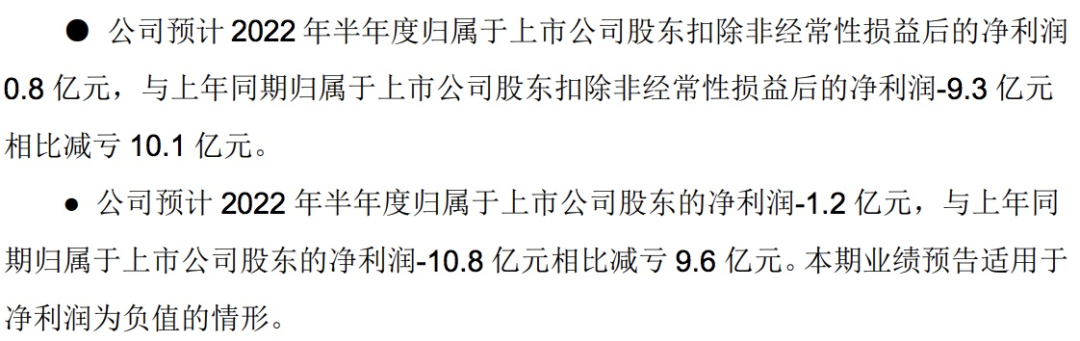 永辉超市发布2022半年度业绩预告,预告显示,该公司预计今年上半年归属于上市公司股东的净利润(下称归母净利润)为-1.2亿元,扣除非经常性损益后为0.8亿元。二者相较于上年同期的-10.8亿元和-9.3亿元,分别减亏9.6亿元和10.1亿元。