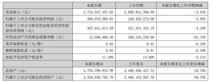 半年报数据显示,报告期内,慕思股份营收实现27.52亿元,同比下降2.03%;归属上市公司股东净利润约3.07亿元,同比下降5.95%;归属上市公司股东扣非后净利润3.08亿元,同比下降4.2%。