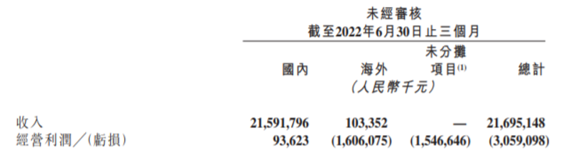 其中,第二季度公司实现营收216.95亿元,同比增幅13.4%;净亏损31.76亿元,亏损同比收窄54.9%;NON-IFRS(非国际通用会计准则)经调整净亏损为13.12亿元、经调整EBITDA则同比扭亏为盈为4.07亿元。