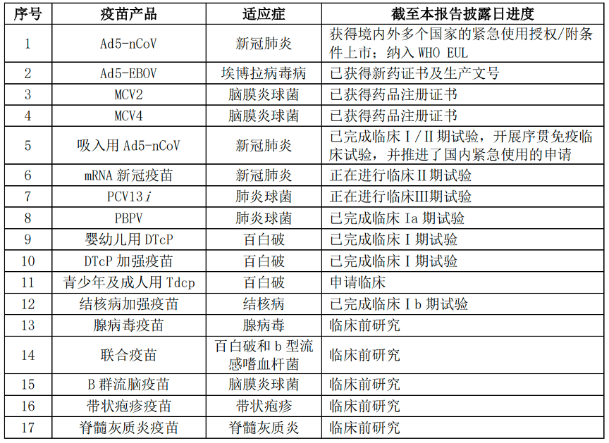 在2021年报中,康希诺并未对具体产品的营收做出分类说明,但其表明,公司的营业快速增长,主要因为克威莎在境内外多个国家的附条件上市批准及紧急使用授权,克威莎的商业化对公司的营业总收入和相关各项利润指标产生积极影响。