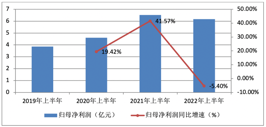 数据显示,2022年上半年,该公司营收同比增长24.49%,归母净利润同比下降5.40%。其中,第二季度公司营收、归母净利润的同比增速为26.46%、-18.66%,后者创上市以来单季利润最大降幅。