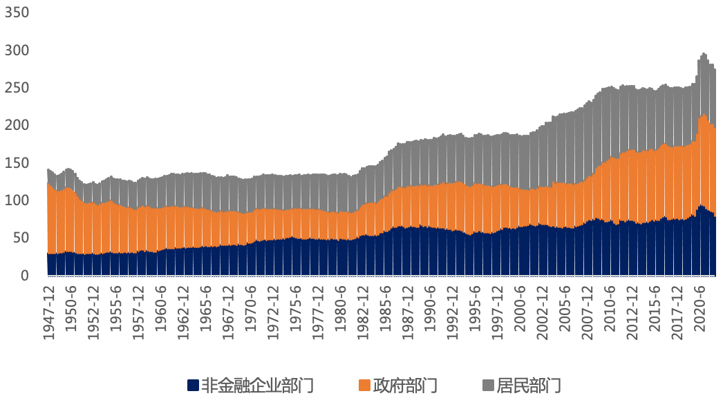 图4 美国三部门(非金融企业部门、政府部门、居民部门)杠杆率