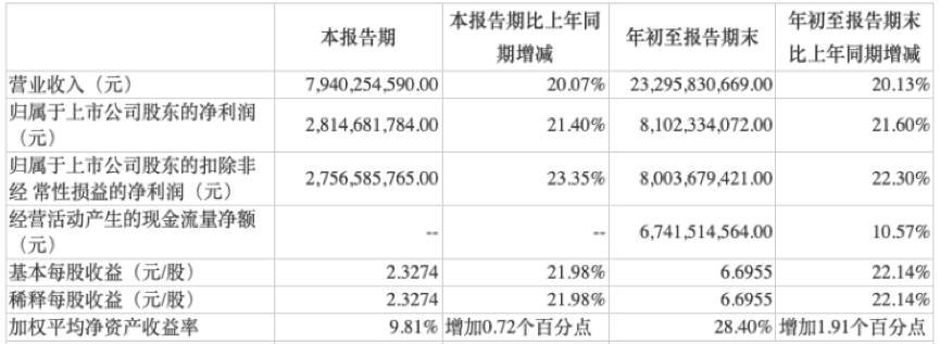 稳中向好——三季度业绩继续保持20%以上增速