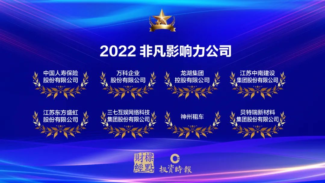 最终,经过激烈的竞争与遴选,一批引领行业未来趋势、敢于突破和创新、经营业绩出色并对社会有突出贡献的企业及个人脱颖而出,获得了褒奖。其中,8家企业摘得“金禧奖·2022非凡影响力公司”奖项,他们分别是: