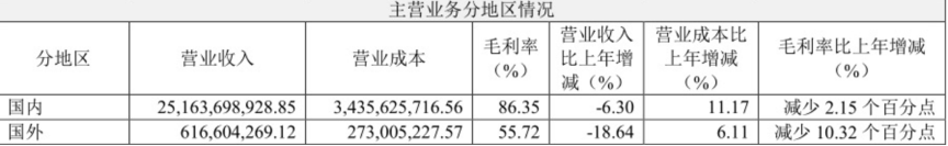 但从业绩贡献来看,海外市场仍未有大的起色。2021年报显示,恒瑞医药海外市场全年实现营业收入6.16亿元,同比下滑18.64%,海外市场销售毛利率为55.72%,同比下滑10.32个百分点。