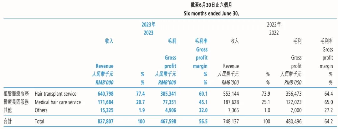 2023年上半年,雍禾医疗的植发业务贡献6.41亿元收入,同比增长15.9%,收入占比提升至77.4%。该业务收入增加,与期内患者人数大增有关。财报显示,2023年2月,雍禾医疗全面升级植发业务的价格体系,将传统以毛囊数量为主导的计价方式,调整为由毛囊种植区间和医生等级为依据的“一口价”定价模式。