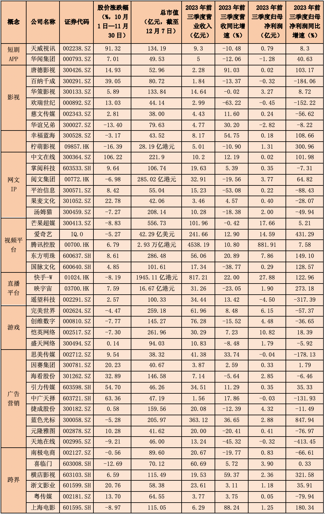 Wind数据显示,今年10月和11月,中文在线股价累计上涨106.22%。11月29日,中文在线发布了一份投资者关系活动记录表,该公司表示,公司在今年成功打造了改编自四月天同名小说的中短剧——《招惹》,该剧登陆腾讯视频后已分账突破2000万元。同时,中文在线还有根据四月天、17K小说平台IP改编的数十部作品待播,后续将陆续登陆各大视频平台。