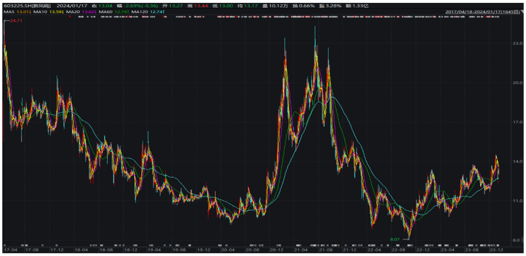 或受上述业绩预喜影响,新凤鸣在1月15日周一开盘后连续两个交易日股价上涨,累计涨幅达4.93%。