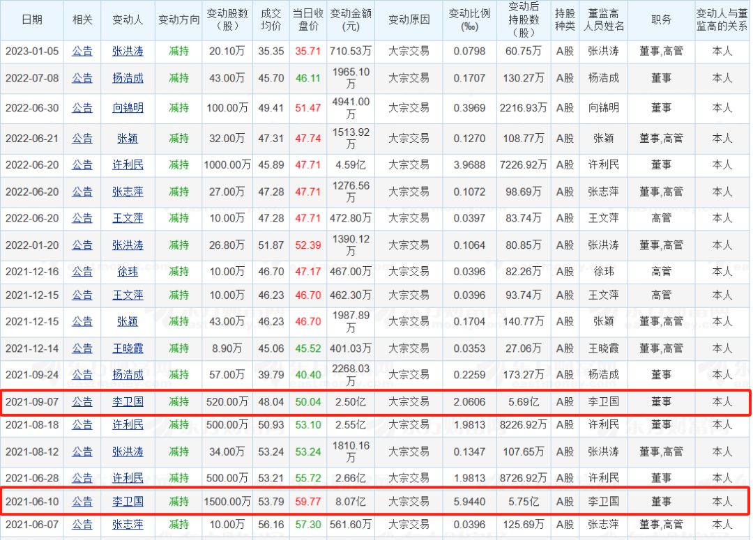 值得关注的是,东方雨虹多位高管2021年—2022年以来多次减持。据东方财富网数据,公司实控人李卫国在2021年减持东方雨虹股份2020万股,涉及金额10.57亿元。而2021年正是东方雨虹股价的巅峰时期。