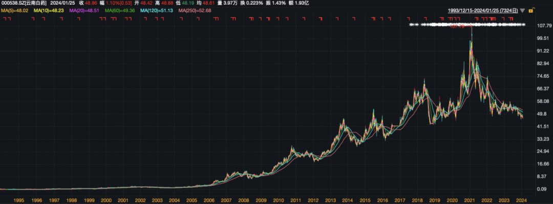 作为一家主营中药的知名中华老字号企业,云南白药已投身于二级证券市场多年。