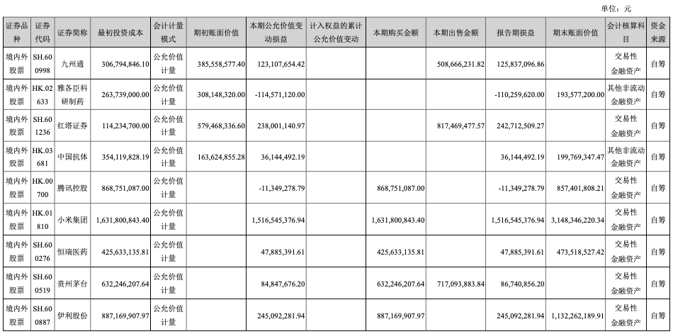 尝到甜头后,云南白药继续购入多家优质企业股票。