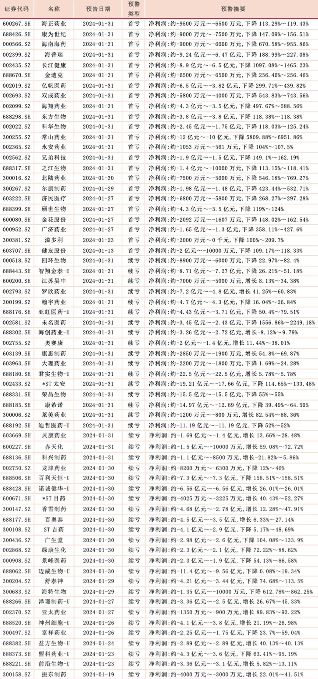 64家药企发布2023年业绩预亏公告