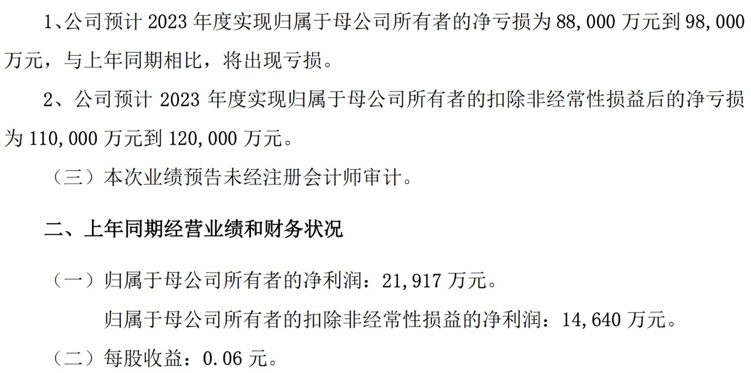 几家欢喜几家愁,亦有部分上市公司交出了净利预减、预亏公告。标点财经研究员注意到,上市后保持盈利二十余年的用友网络,2023年预计将由盈转亏。数据披露,该公司预计2023年营收同比微增5%—6%至97.25亿元到98.20亿元;预计同期归母净利润亏损8.80亿元至9.80亿元,而上年同期为盈利2.19亿元。