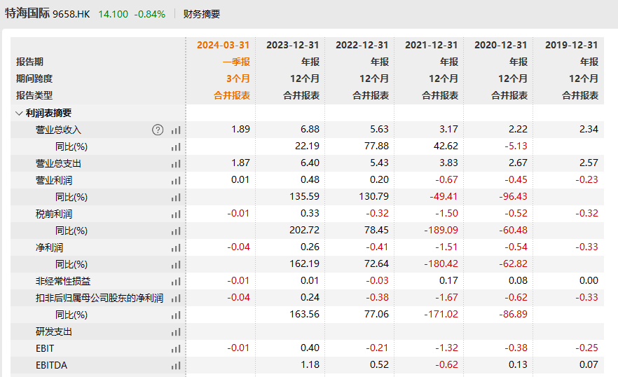 不过今年一季度,特海国际再次亏损,单季度实现收入1.88亿美元,同比增长16.60%,但公司拥有人应占年内溢利却降至-445.7万美元,上年同期为盈利561.6万美元。