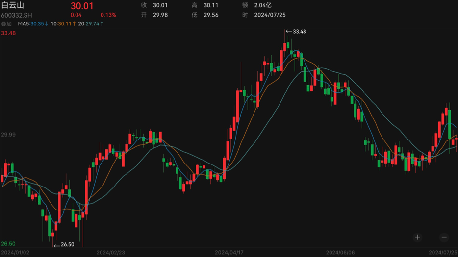 尽管上述消息未经公司及有关方面证实,但受董事长辞职消息影响,7月23日开盘后,白云山A股股价小幅上涨后回落。截至收盘,白云山A股下跌3.2%,报29.99元/股。截至7月25日,白云山A股报收于30.01元/股,目前市值为462亿元。