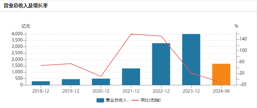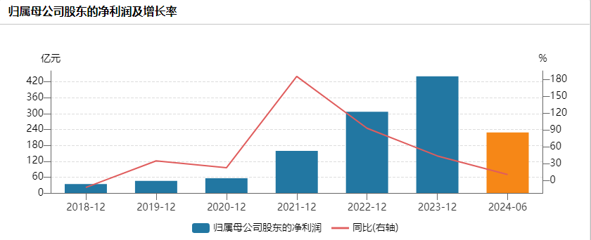 而宁德时代发布的2024年半年报显示,公司今年上半年实现营业收入1667.67亿元,同比减少11.88%;实现归母净利润228.65亿元,同比增长10.37%;实现扣非归母净利润200.54亿元,同比增长14.25%。