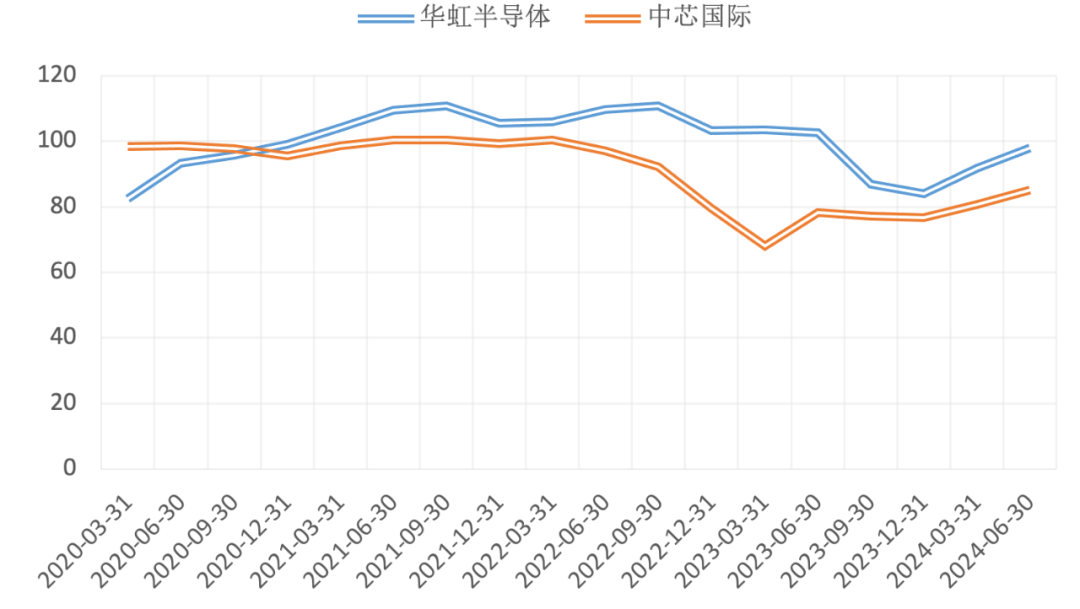 从业绩同比变动来看,华虹半导体和中芯国际都未走出业绩低迷的困境,但情况已有所好转