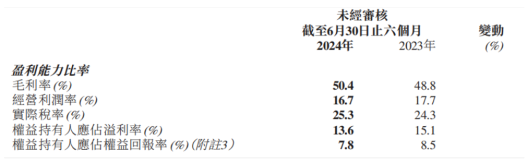同时,公司在广告和促销活动(尤其是电商营销活动)投入更多,以及扩充第九代门店产生更多的装修及设计成本,361度本期销售费用率略有提升。再结合其他收益减少、应收账款减值拨备影响,该公司上半年的经营利润率下行至20.6%,同比减少2.4个百分点;权益持有人应占溢利率也降至15.4%。