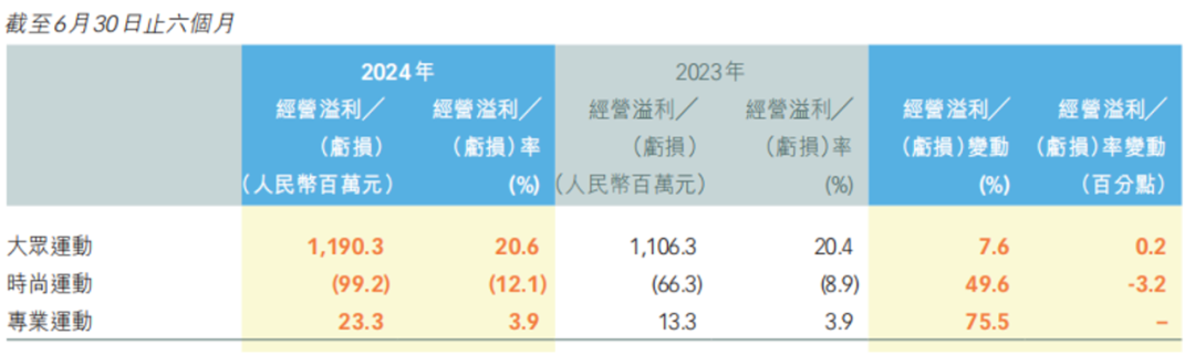 安踏体育实施“单聚焦、多品牌、全球化”战略,主品牌安踏针对专业大众市场,FILA定位为高端时尚运动品牌,DESCENTE(迪桑特)和KOLON SPORT(可隆)等则是户外运动品牌。今年上半年,主品牌安踏营收同比增长13.5%,经营溢利同比增速为17.9%,相比2023年上半年,主品牌表现优异。