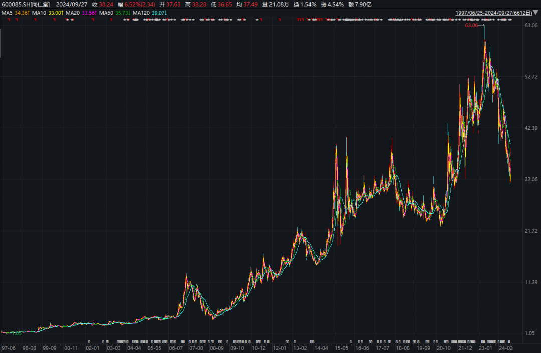 同样作为名贵中药品种,和片仔癀一样,西南证券研报显示,同仁堂也在过去20年持续对所产的安宫牛黄丸进行提价,售价从2020年的145元/粒涨至2021年12月的860元/粒,累计上涨493.10%。