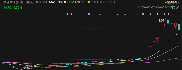 而在此前,即自5月30日至6月10日,共创草坪曾创下连涨7个交易日、收获6个涨停板的“高光”纪录,股价飙涨主要由江苏省城市足球联赛(下称苏超)火爆出圈催化。