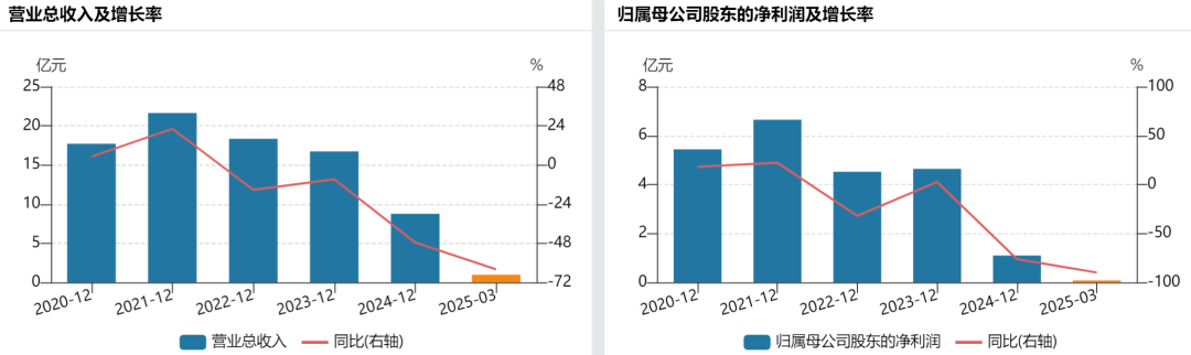 从业绩来看,2022年至2024年,浙江美大分别实现营收18.34亿元、16.73亿元、8.77亿元,同比增速分别为-15.24%、-8.80%、-47.54%;实现归属于上市公司股东的净利润(下称归母净利润)分别为4.52亿元、4.64亿元、1.10亿元,同比增速分别为-31.97%、2.68%、-76.21%。今年第一季度,浙江美大营收同比下滑63.97%至9836.38万元;归母净利润同比下滑89.90%至779.38万元。
