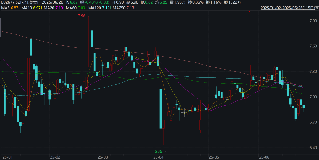 据公告披露,浙江美大董事长、财务负责人王培飞于2025年6月23日至6月24日期间,通过深圳证券交易所集中竞价交易方式累计减持公司股份355.75万股,占公司总股本的0.5507%,减持均价分别为6.774元/股和6.83元/股,减持金额合计约2409.85万元。